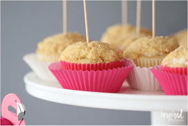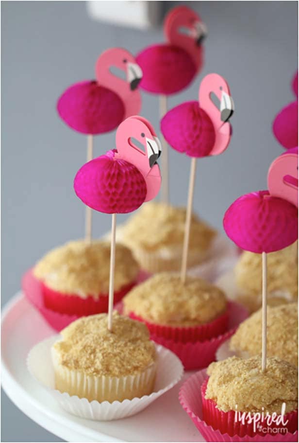 I love this flavor combination so I’m pretty much obsessed with these cupcakes. I also got the idea to dip the frosted cupcakes into graham cracker crumbs to look like sand – the perfect resting place for my flamingos. Plus, the graham cracker crumbs added awesome crunch and flavor.