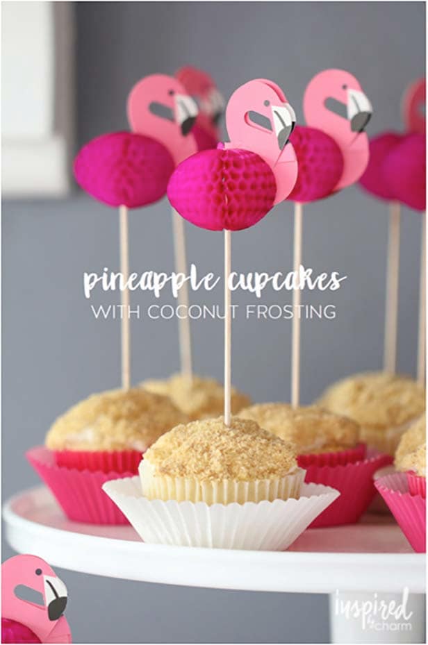 Now, no party of mine is complete without a sweet treat. After finding adorable flamingo picks I knew I needed some tropical cupcakes. And what’s more tropical than pineapple and coconut?
