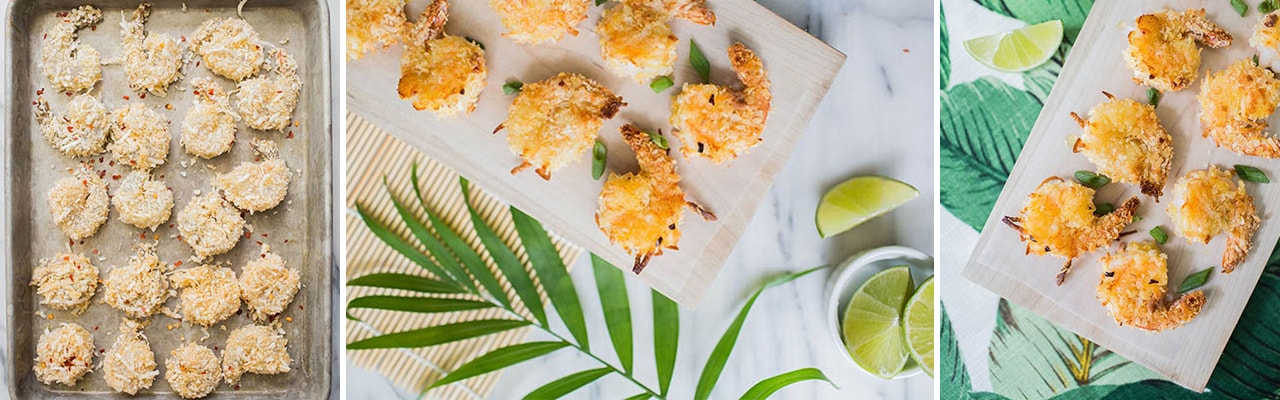 Though it’s one of my favorite ways to prepare and eat shrimp, coconut shrimp can be a bit unhealthy in its traditional fried form. Here, I’ve opted to bake the shrimp instead. You get the same great crunch and coconut flavor, but it’s a lot healthier and in my opinion, a lot easier to cook as well!