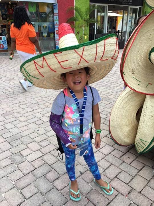 My youngest daughter had broken her arm right before we were leaving for our cruise. Thankfully, they now make water proof cast covers! So, Madeline was able to get into the water and had so much fun with the dolphins!