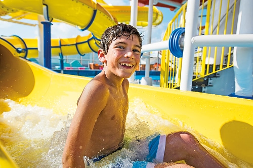 Carnival Sunrise’s onboard WaterWorks features exciting slides and splash zones for the entire family.