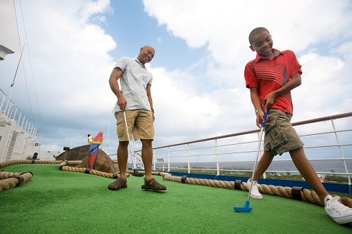 All ages can try their skill at Mini-Golf. Avoid the windmill and other course challenges, while enjoying the sun and open seas.