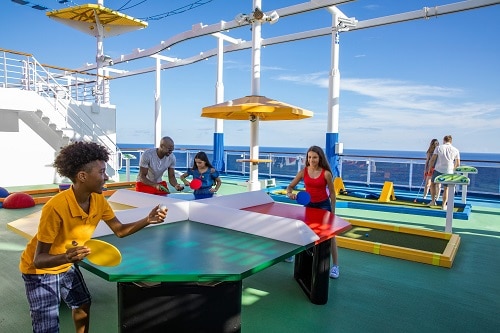 Whether you play to win or just for fun, SportSquare has you covered. Choose from a selection of sports such as ping-pong, basketball and volleyball — even a jogging track — all on deck so you can enjoy the fresh ocean air.