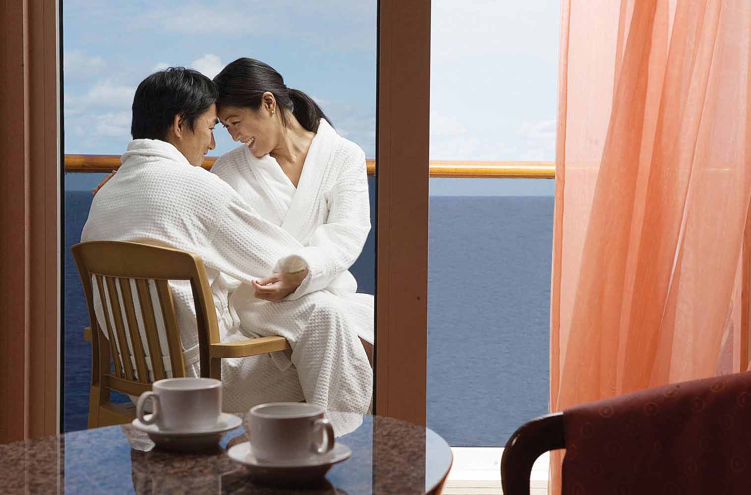 After a fun night out with your sweetheart, you might want to refresh and rejuvenate the next day. Carnival’s Cloud 9 Spa Thermal Suites are zones dedicated to relaxing — no kids allowed! Each zone is carefully designed by Carnival’s master climate artists in order to find the perfect relaxing temperature. Don a soft-cotton robe and relax in the dry heat of the Laconium or Tepidarium, or opt for the soothing moisture or the Oriental or Aroma Steam baths. Whichever temperature and climate you prefer, you can find it here. Let your worries float away as you two relax in ultimate bliss.