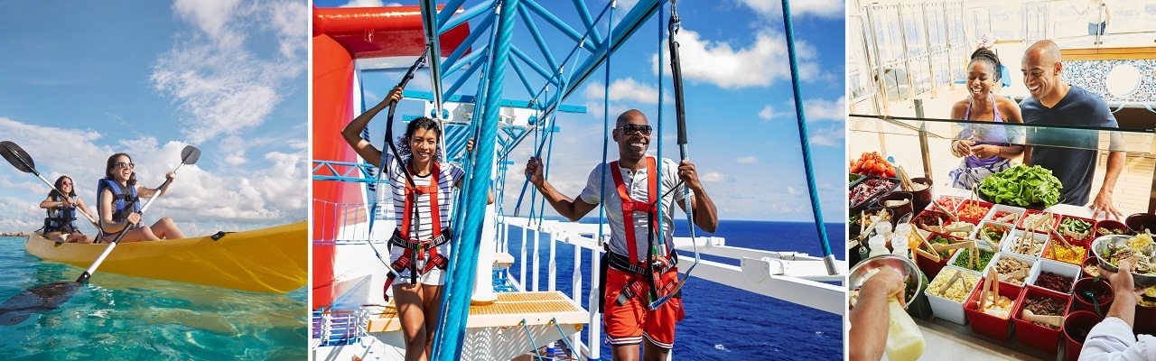 Note: Onboard activities, shore excursions, and dining options may vary by ship and destination.