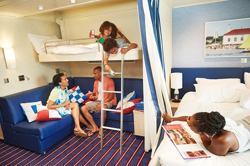 - Suite stateroom: Larger rooms that are ideal for family cruises. These suites give everyone in your group ample room to stretch out.