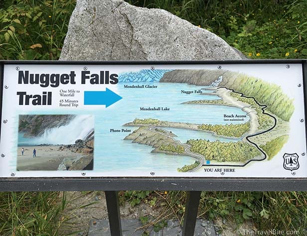 The Nugget Falls Trail is about a 45 minute walk round-trip, or if you’re like us, a little longer when you stop to take photos. The trail was well maintained and easy to navigate, with a lot to see along the way including smaller waterfalls, wildflowers, and a sandy beach that provided a closer view of the glacier.