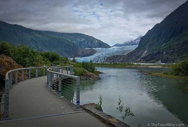 Mendenhall Glacier Excursion Tip: Pack a bottle of water and a wind breaker or light jacket. No hiking boots are needed as the trails are mostly flat and well maintained, so comfortable walkings shoes or sneakers are perfect.