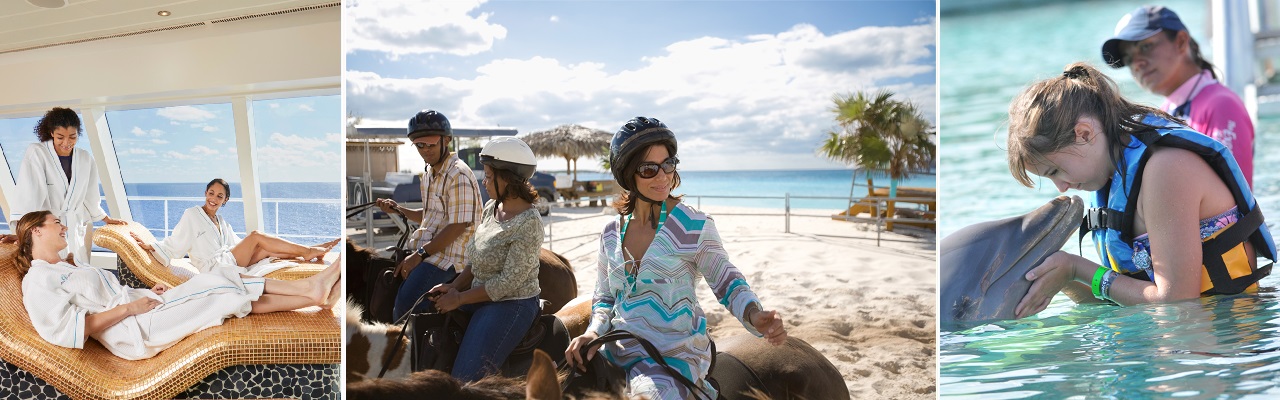 Note: Onboard activities, shore excursions, and dining options may vary by ship and destination.