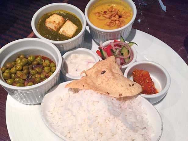 Lentils, basmati rice, papadam and raita. (SO GOOD!!)