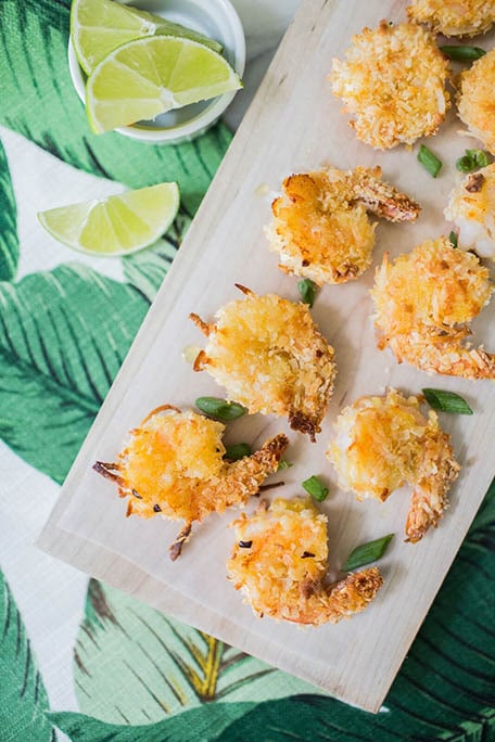 Though it’s one of my favorite ways to prepare and eat shrimp, coconut shrimp can be a bit unhealthy in its traditional fried form. Here, I’ve opted to bake the shrimp instead. You get the same great crunch and coconut flavor, but it’s a lot healthier and in my opinion, a lot easier to cook as well!