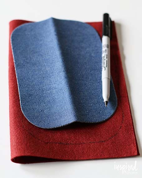 Using one patch as a pattern, trace the shape onto a piece of felt with a felt tip marker. Since you need two of the felt shape, first fold the large piece of felt in half. (This will allow you to cut out both of the shapes at one time.)