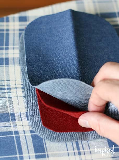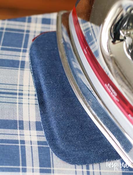By ironing, you will seal the edges as well as adhere the denim patches to the felt to create a felt pocket.