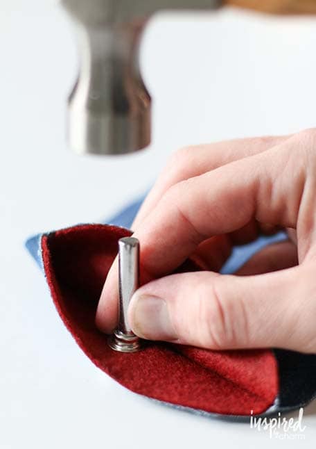 Finally, attach the snaps. Use a hole punch to create a hole in the same spot on both layers of the material in the center about 1/2-inch down from the top. (I recommend inserting your passport into the pouch to find the best spot so your passport will fit when the snaps are closed.