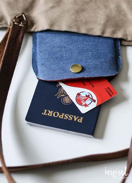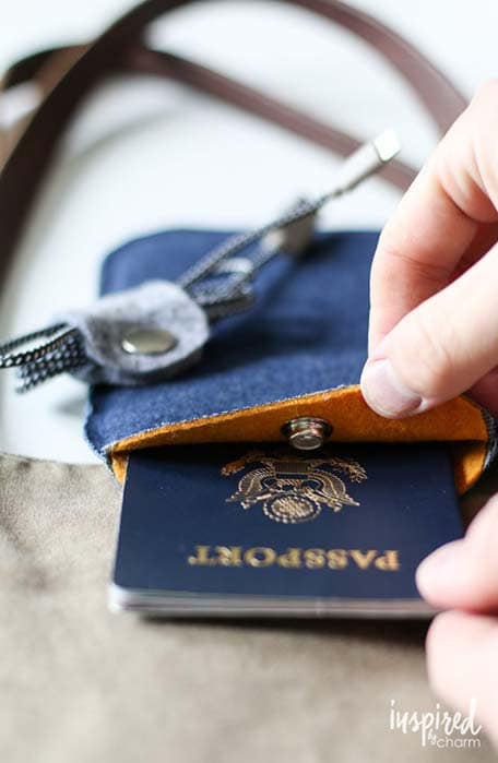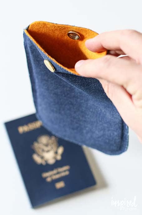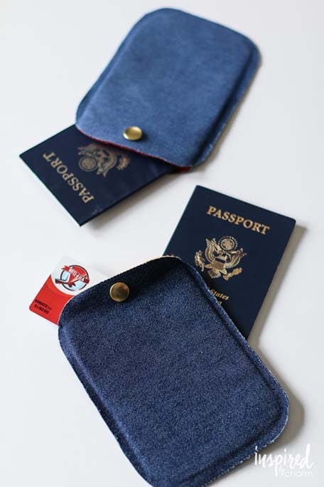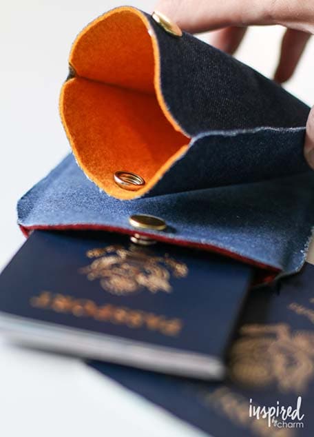 These kits are available in a variety of denim colors, and they include a couple patches that are the right size for a passport cover. With their adhesive backing, the two patches can be ironed together. The colorful felt in between them creates a cozy and safe pocket for a passport.