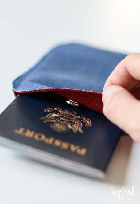 Inspired by the DIY Felt Cable Organizers I made a couple months ago, I decided to add a snap to ensure the passport stayed inside.