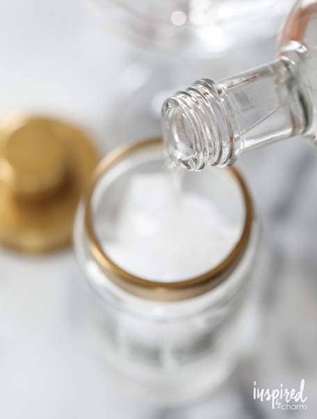 In case you’re not aware, the Alchemy Bar is a unique place on the Carnival 2.0 cruise ships. The bar is a vintage-themed cocktail “pharmacy” with elixirs to “cure what ails you.” The menu (with alcoholic and non-alcoholic options) is extra special in that it only includes handcrafted cocktails (no beer or soda), using fresh fruit and herbs. The Alchemy Bar serves my favorite martini, the Spicy Chipotle Pineapple Martini, which I showed you how to make a couple years ago. Inspired by the Alchemy Bar, (and Valentine’s Day which is just around the corner), I thought I’d try a new-to-me cocktail from their menu, the Curative Peach Cosmopolitan.