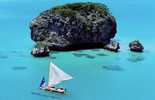 Sail around the blue lagoon on a traditional outrigger and explore the stunning sights of Upi Bay. Stop off or a swim in the pristine waters or take a walk in its tranquil rain forest.