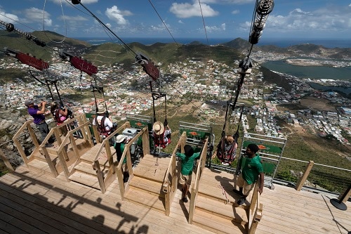 St. Maarten boasts the world’s steepest zip line – “The Flying Dutchman” – along with the Soualiga Sky Explorer chairlift, an inner-tube slide ride and additional zip lines on the spectacular slopes of Sentry Hill, its highest point.