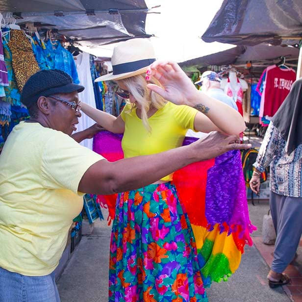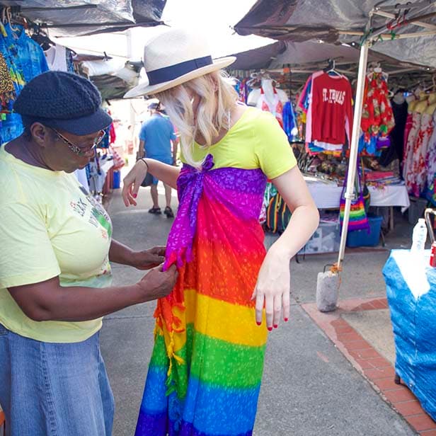 OH MY GOSH I was in MARKET HEAVEN when I was on my Carnival Cruise!!! Something I would HIGHLY recommend if you’re offshore exploring or going on an excursion is making sure you spend a little bit of time walking around the local markets. You can find most markets a short walk from the ship. I was recently sailing on the Carnival Glory and I had A BLAST exploring offshore in the beautiful open market in St. Thomas. People are really friendly and eager to help if you have questions. I found myself captivated by the beautiful fabrics and how the women would wear them. I was able to get a few tutorials and left with some priceless treasures!!!