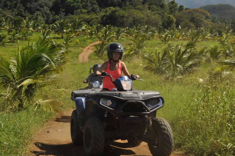 woman with a helmet riding an atv on dirt trails in ocho rios