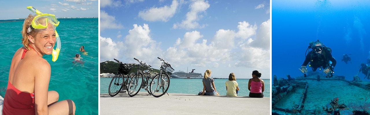 Note: Onboard activities, shore excursions, and dining options may vary by ship and destination.