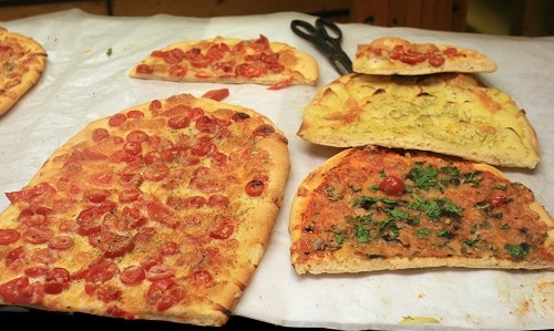 You specify how much you would like when you order, which means you can try one, or five, small slices of all kinds of pizza.