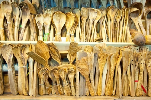 For one-of-a-kind kitchen items, look for products made from olive wood. Artisans on Corfu sculpt olive wood by hand to create utensils and other kitchen items that are just as beautiful as they are functional.