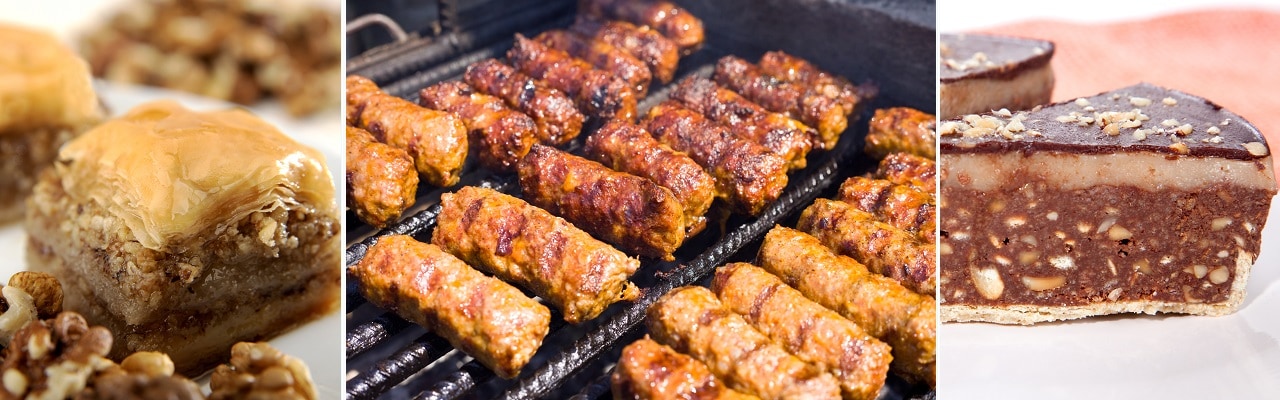 If you enjoy a sweet treat in the afternoon or like to end dinner with dessert, seek out a slice of bajadera. It’s one of the most famous sweets in the Balkans. In the middle of this layered confection is a type of nougat made from crushed nuts and shortbread cookies.