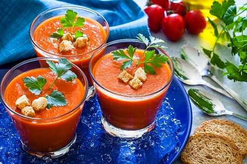 Are you wondering what to eat in Málaga in the summertime? Think like a local and enjoy a bowl of gazpacho. This easy-to-prepare, chilled summer soup is made in a blender by mixing tomatoes, green peppers, olive oil, garlic, bread and water. A serving of gazpacho makes a yummy lunch option or a great dinner starter on a summer evening.