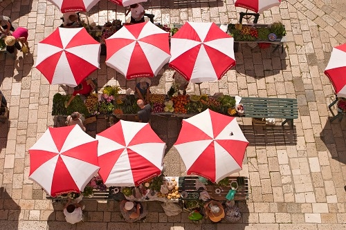 In the southeastern corner of Old Town during the summertime you can find an outdoor market that fills Gundulićeva Poljana (one of the main squares) six days a week.