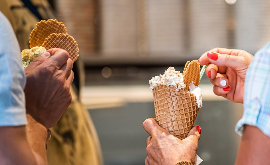 Whenever I came across a gelato shop, it looked so good I had to get some no matter what time of day it was. The classic flavor, “stracciatella,” is the best. It’s from Northern Italy and is milky with chocolate shavings mixed in.