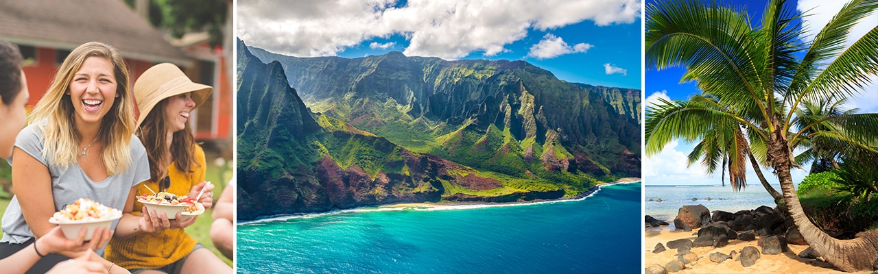 Likewise, you can sample other local favorites like manapua — tasty pastries stuffed with marinated meats and steamed vegetables — or virtually any type of seafood imaginable at roadside stands and smaller restaurants scattered throughout the islands. Also, don’t forget that after a day of Hawaiian adventure, there’s always a Hawaiian shaved ice nearby.