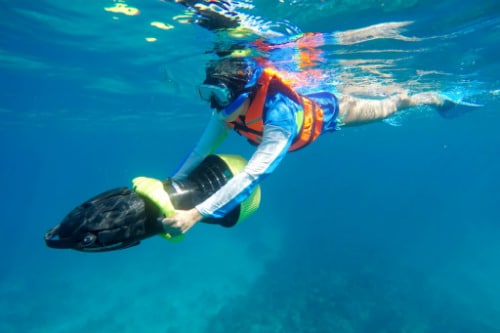 If you’re on a family cruise with teens, they’ll love snorkeling in the crystal clear, turquoise water of the coral reefs and spot fascinating sea creatures. To add to the fun, experienced swimmers can try power snorkeling with a Sea Doo Scooter and skim the surface faster than you can swim, or dive down easily to get a closer look at the underwater world.