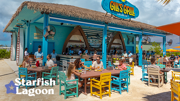 Enjoy Caribbean seafood, including seafood baskets, local fish and lobster, along with land-based favorites like chicken, burgers, kids' meals and more — all served al fresco, by the family-friendly lagoon.