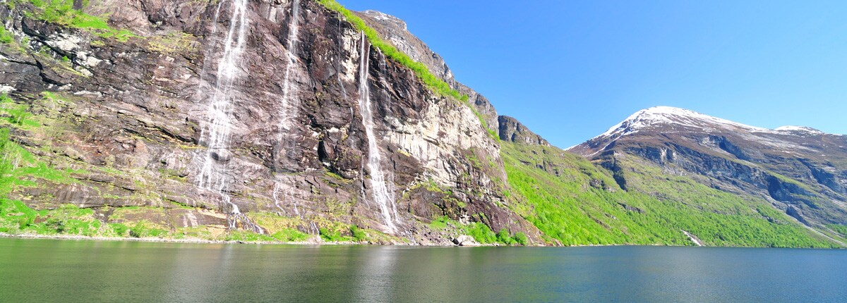 With its deep blue waters, scenic waterfalls and massive mountains, Geirangerfjord is one of the best-known and most beautiful fjords in the world. Cruise past some amazingly tall, foaming waterfalls in this UNESCO World Heritage Site. Two of the most notable waterfalls face each other across the nine-mile, winding fjord: The Seven Sisters, featuring seven streams and amazingly high plunge depths; and the Suitor, a waterfall shaped like a bottle. Legend goes that The Suitor is trying to woo the Sisters, but is continually rebuffed. Sail beyond these splendors and you’ll also enjoy the beautiful Bridal Veil, aptly named due to the appearance of a thin veil over the rocks in the sun. Even more natural beauty awaits during your scenic cruise of Geirangerfjord — sail alongside snow-capped mountains, lush green valleys, breathtaking glaciers and quaint antique farms. With so much to photograph and take in, this amazing experience is one you’ll soon not forget.