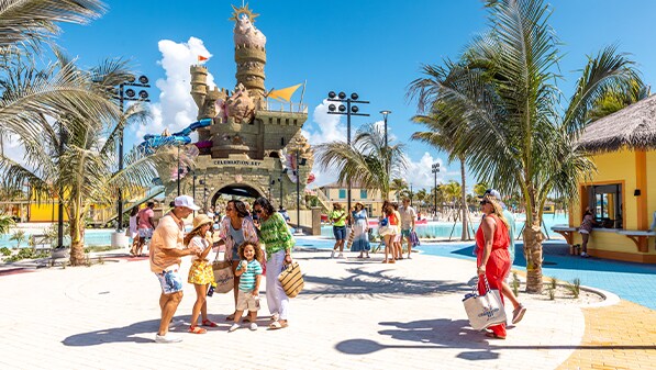 Unforgettable vacation days all start somewhere, and your Celebration Key visit kicks off at Paradise Plaza. So, believe your eyes! That is the world's largest sandcastle off in the distance. We call it The Suncastle. Also, believe your ears! Live music is always in the air at Paradise Plaza. This portal isn't just a picturesque welcome point, but a place to get info that will help you find your way around Celebration Key. Plus, don't forget that you can always come back to add some shore excursions to your day. Or — totally sweet idea — come back for some ice cream!