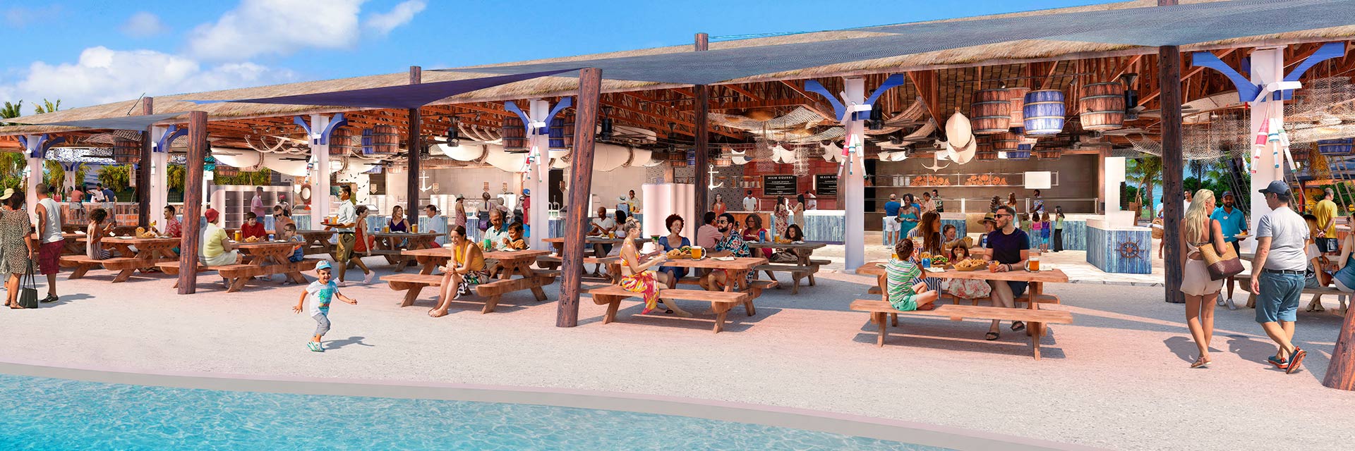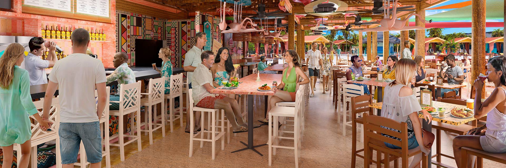 If you’re out to find new legends, flip directly to the RedFrog Pub®, featuring not only a mythical mascot, but actual drinks — plus Caribbean atmosphere by the gallon. Your heroic journey down the Green Thunder waterslide is a saga you’ll recount for ages. Bonsai Sushi™ proves that you needn’t teach a man to fish for him to enjoy delicacies from the sea. Once you’ve had a look — not to mention a taste — at the cocktail magic of Alchemy Bar®, you still may not believe your eyes. And Carnival Legend® even has a place for saluting some real-life heroes: Heroes Tribute™ Bar.