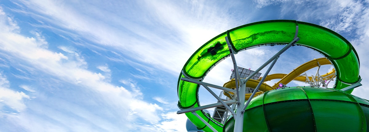 Carnival Splendor's Green Lightning thrill-slide begins with an impressive 11.3 metre free-fall drop as the capsule floor opens. Followed by a slingshot curve, twisting and sliding guests into a giant swirling bowl. Find our amazing water-slide on Deck 11.